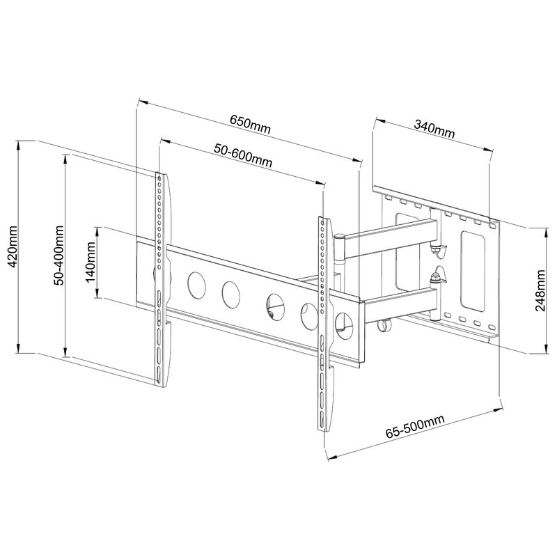 Wandabstand: 65 - 500 mm (ausziehbar) - Einstellbarer Lochabstand: 50 - 600 mm, 50 - 400 mm (BxH)